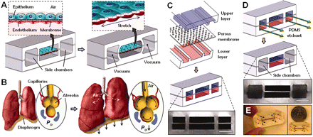 2) Huh D. et al. “Reconstituting Organ-Level Lung Functions on a Chip” Science Volume 328 (5986), pages 1662 – 1668 (2010) DOI: 10.1126/science.1188302