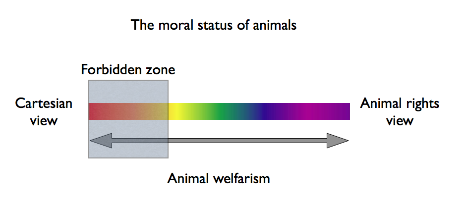 These philosophers want to force everyone to choose among the two extreme positions — either we accept the animal rights view or we must be cartesians that assign no moral status to the animals.