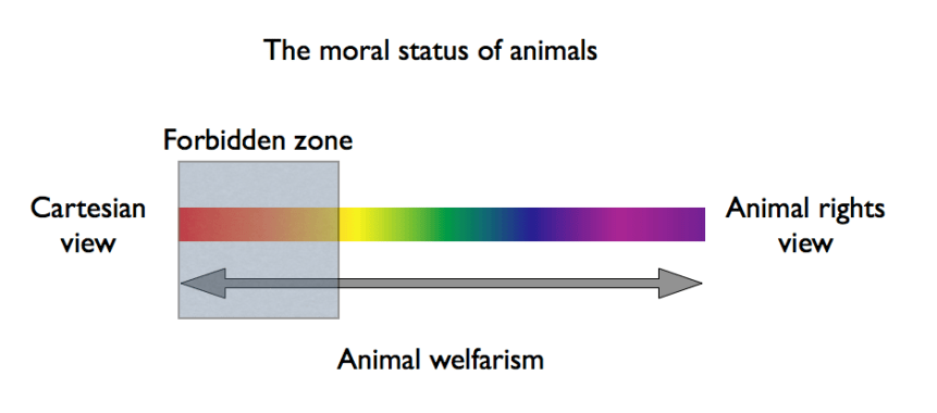It is evident that most members of the public, including scientists that work with animals in medical research, prefer to position themselves somewhere between the two extremes. These more nuanced positions can be considered to represent different versions of “animal welfarism” which are based on the notion of graded moral status. In these theories animals would certainly have higher moral status than inanimate laboratory equipment, but not that of humans. Animal anti-cruelty laws, the Animal Welfare Act, and the NIH guidelines as examples of how rules and regulations were established to acknowledge the moral standing of animals (establishing the “forbidden zone” in the spectrum of positions above).