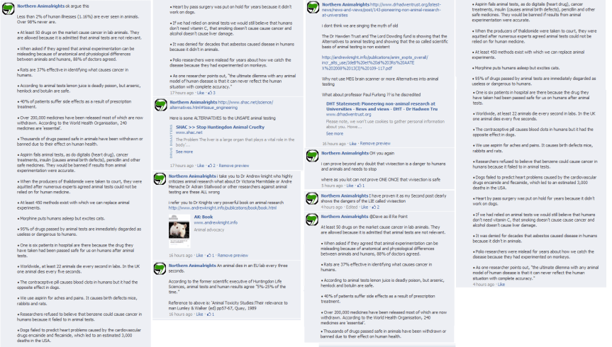 After our recent annoucnement about the Science Action Network, an animal rights activist called “Northern animalrights” decided to come to our Facebook page to lay down the “facts” about animal research.