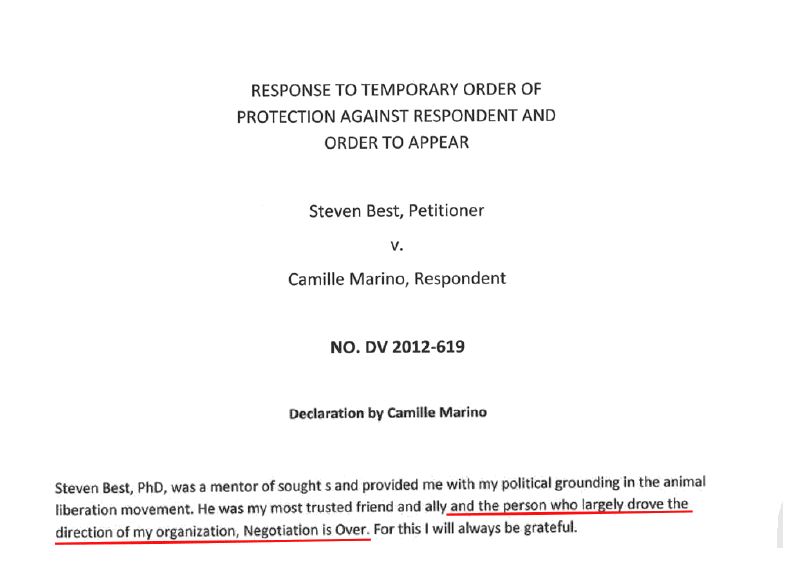 Sadly, Professor Best, form the Department of Philosophy, at the University of Texas, El Paso, does not seem to grasp this concept. Apparently responding to external pressures, he now seems in a hurry to erase his past associations with animal rights extremists. In particular his collaboration with Camille Marino, of the web site Negotiation is Over.