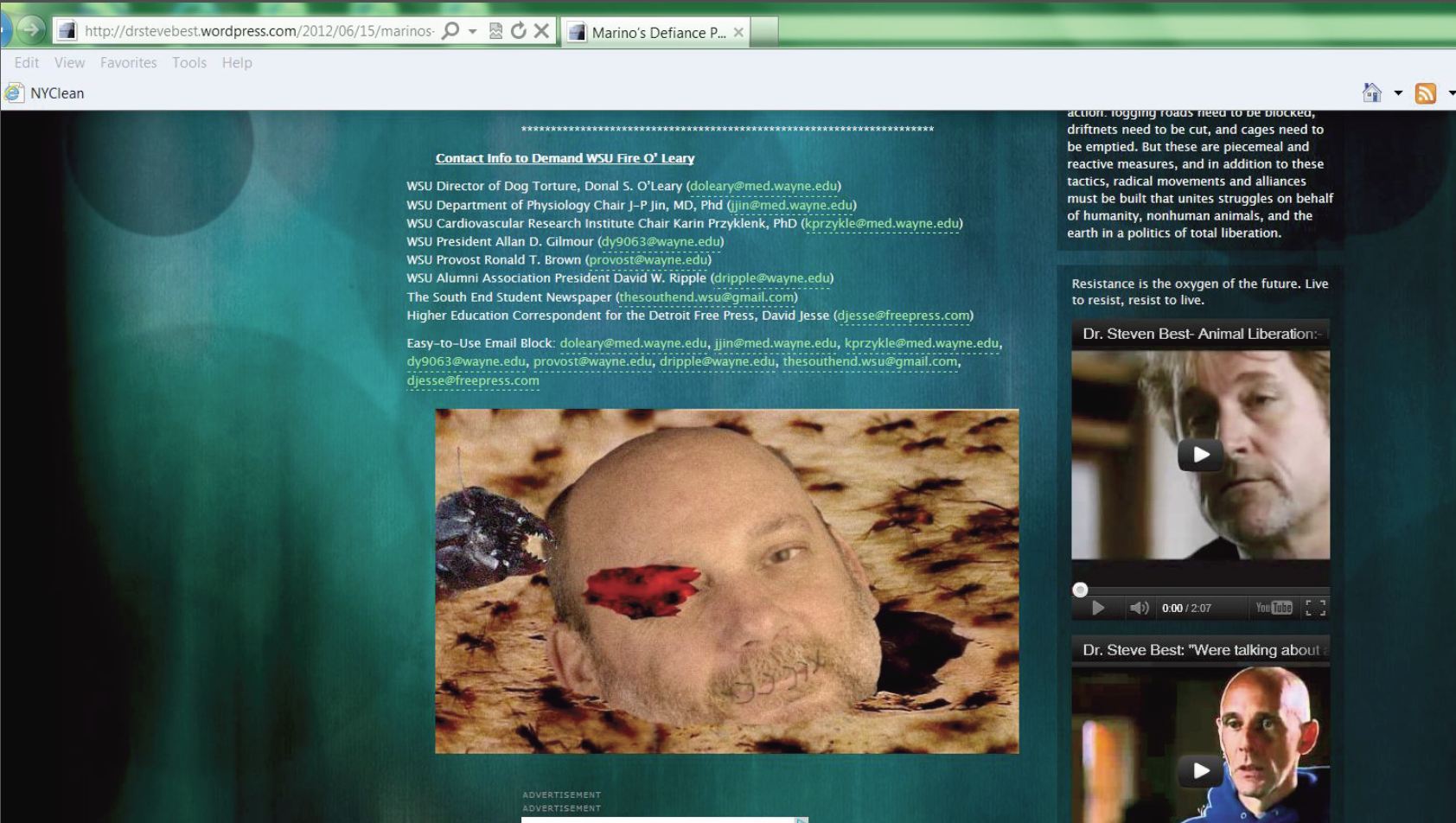 The first is an image captured from Prof. Best’s personal blog, showing he played an active part in the Negotiation is Over’s campaign against Prof. O’Leary at Wayne State University.
