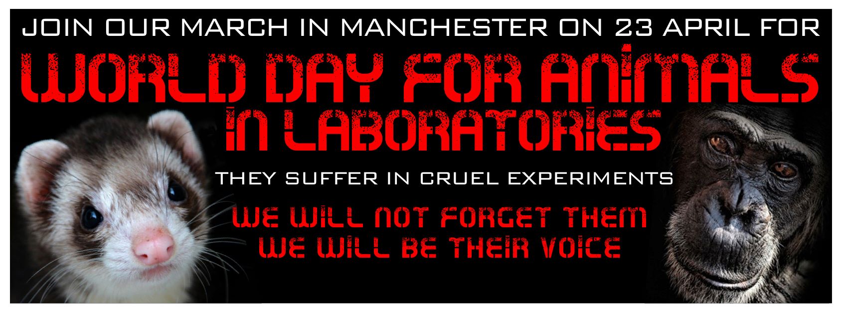Today’s guest post is from Patrick Smith, a PhD student at the University of Manchester, UK. He discusses an upcoming animal rights demonstration in his city, which is taking place as part of World Day for Animals in Laboratories (Part of World Week for Animals in Labs).