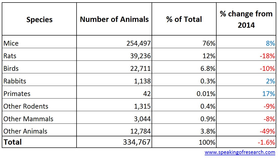 You may have noticed that Speaking of Research has expanded its list of national animal research statistics to around 30 countries. We would like to thank the RSPCA’s Lab Animal team for supplying us with some of our more recent EU additions. However, our most recent addition is the 2015 statistics for Israel, which showed that the number of animals used in research had declined by 1.6% to 334,767 animals. These numbers can be found on the Israeli Ministry of Health website.