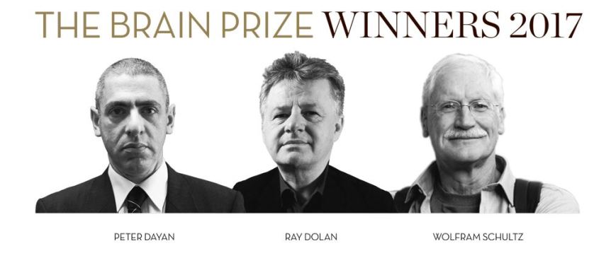 - 2017 Brain Prize announced – Peter Dayan, Ray Dolan and Wolfram Schultz. Collectively, their work examines the ability of humans and animals to link rewards to events and actions. This research, involving non-human primates, provides valuable insights into motivation to perform both positive and negative behaviour, how those behaviours regulate emotions such as happiness and how dysregulation may affect addictive/compulsive behaviours such as gambling. Read more about this here.