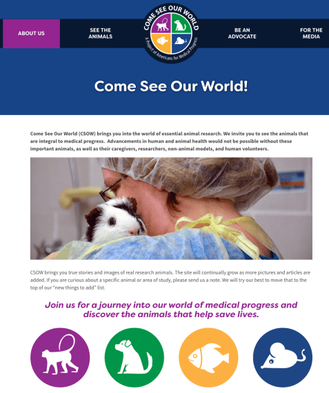 We gave the site a test-run and found it to be extremely easy to navigate, appealing to view, and the information easily digestible by young and old alike. This will be a great resource for educators, scientists, policymakers – anyone, really, who is interested in learning about and promoting the accurate dissemination of animal research-related information. Visit the site now and enjoy the virtual menagerie!