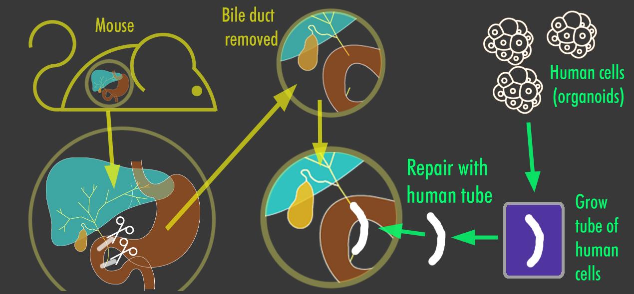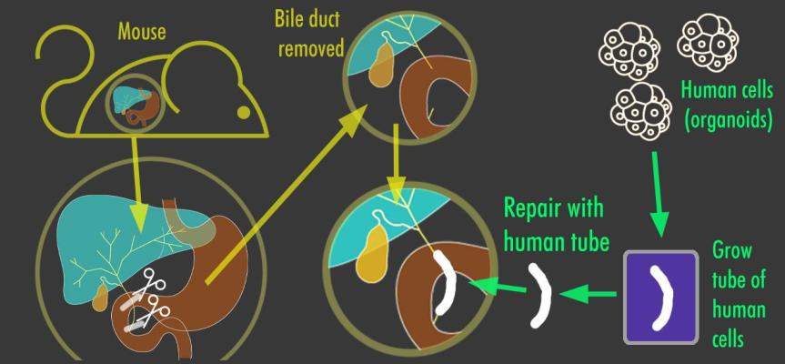 - Artificial bile ducts successfully grown in the lab and transplanted into mice could help treat liver disease in children. Scientists in Cambridge, UK, have developed a new method for growing artificial bile ducts in the lab and successfully transplanting them into lab mice — a development that could one day be used to treat liver disease in children. The discovery could also reduce the need for liver transplants in these patients. The researchers extracted healthy cells (called cholangiocytes) from bile ducts and grew them into functioning 3D structures known as biliary organoids. Researchers then grew the organoids on a “biodegradable collagen scaffold” in order to shape the organoid into a tube, which they then transplanted into mice to replace damaged bile ducts. The transplants were successful, and the animals survived without any further complications. The scientists emphasized the “power of tissue engineering and regenerative medicine that these results demonstrate. “These artificial bile ducts will not only be useful for transplanting, but could also be used to model other diseases of the bile duct and potentially develop new drug treatments,” said Dr. Fotrio Sampaziotis, lead author on the study.