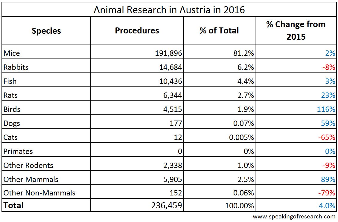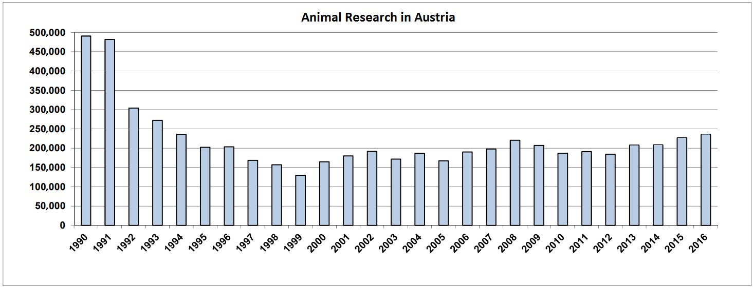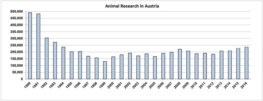 Austria reported 236,459 procedures on animals in 2016, a 4% rise on the previous year.