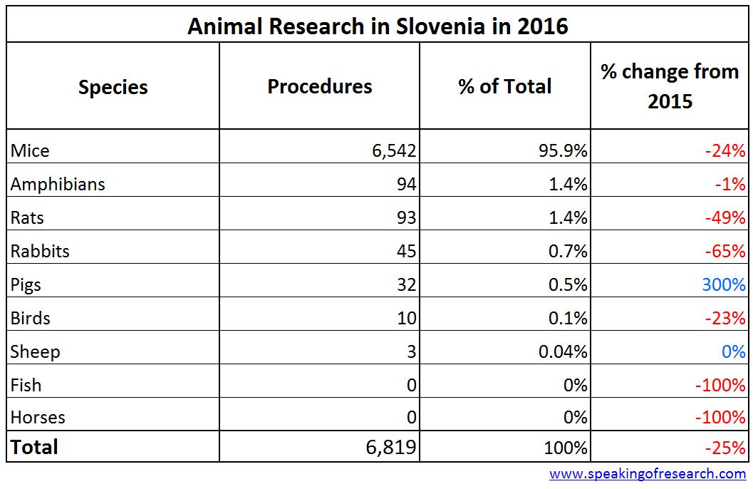 Slovenia reported 6,819 procedures on animals in 2016, a 25% fall on the previous year.