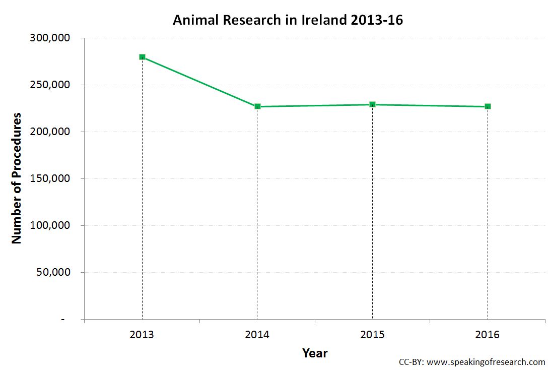 Since 2014, the number of animal procedures in Ireland has been fairly constant at around 230,000.