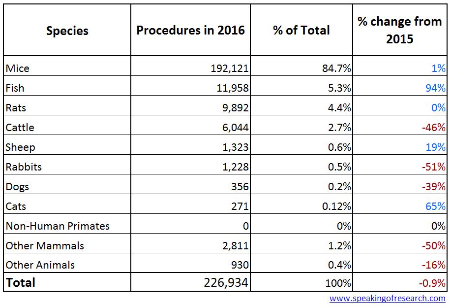 Speaking of Research try to keep on top of the latest statistics coming from governments around the world. Ireland’s 2016 statistics were recently released by the Health Products Regulatory Authority of Ireland (HPRA). Ireland carried out 226,934 procedures on animals in 2016, 1% less than in 2015.