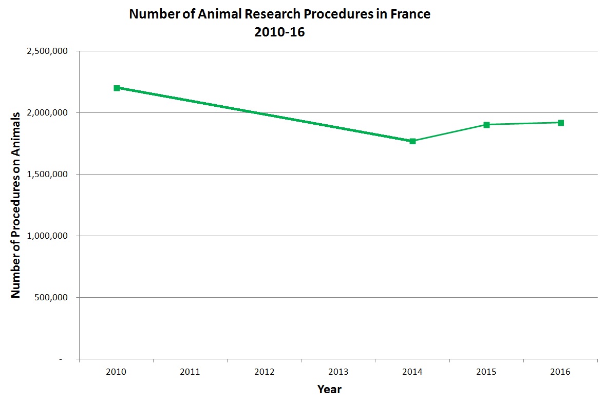 Source of the French Statistics: http://www.enseignementsup-recherche.gouv.fr/cid70613/enquete-statistique-sur-l-utilisation-des-animaux-a-des-fins-scientifiques.html