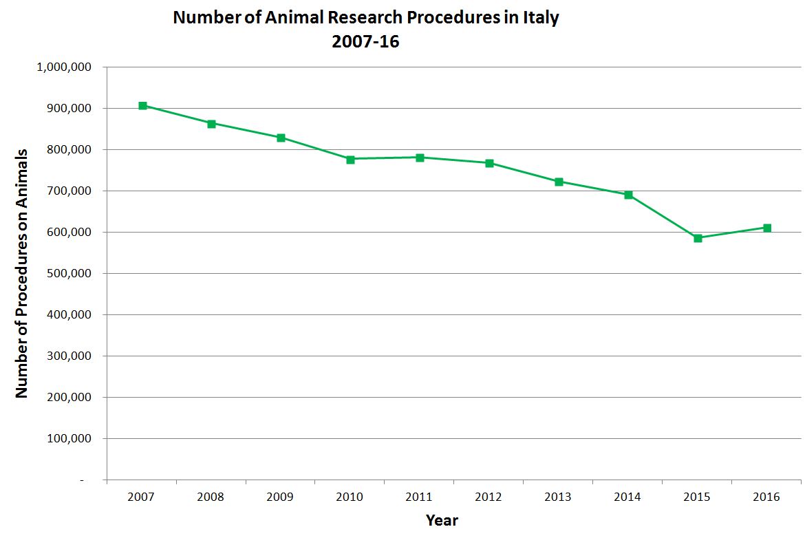 Source of the Italian Statistics: http://www.salute.gov.it/portale/temi/p2_6.jsp?lingua=italiano&id=4400&area=sanitaAnimale&menu=sperimentazione