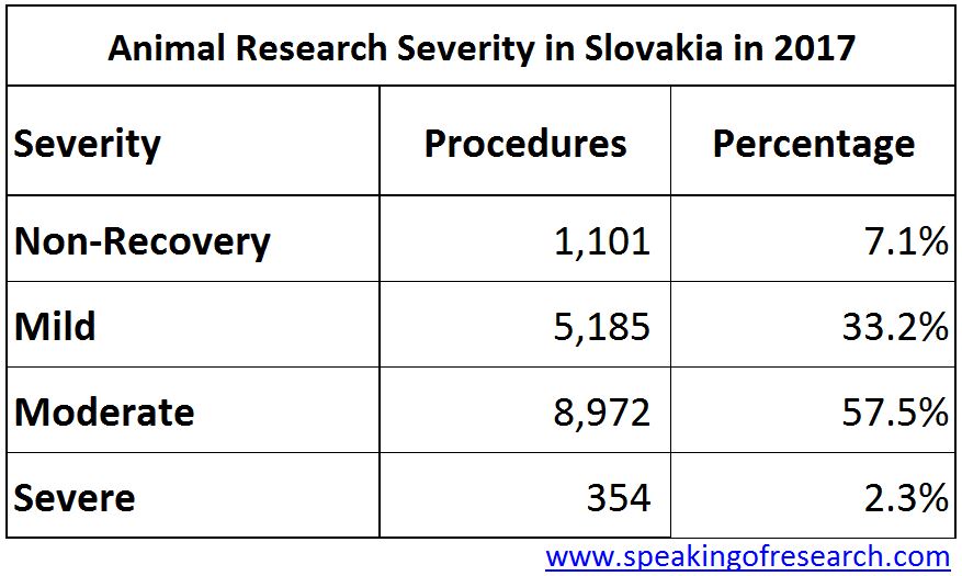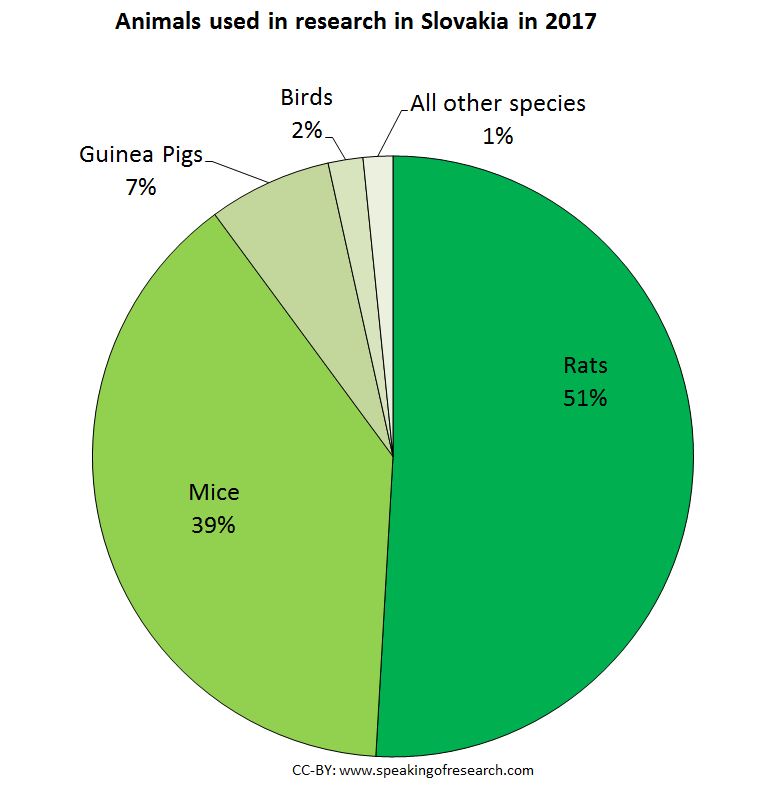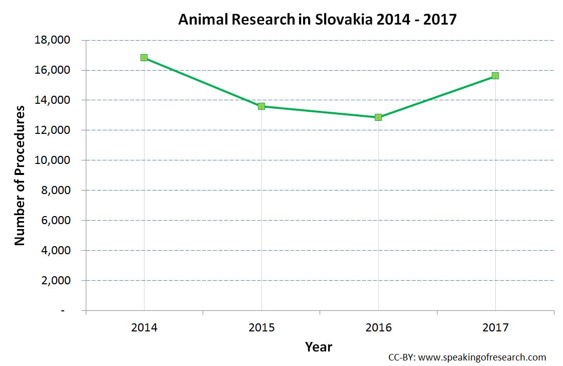 Slovakia was beaten by the Czech Republic to become the first EU country to report (permalink) its annual statistics in May. According to the State Veterinary and Food Administration (ŠVPS) there were 15,612 procedures on animals in Slovakia in 2017, a 21% rise from 2016.