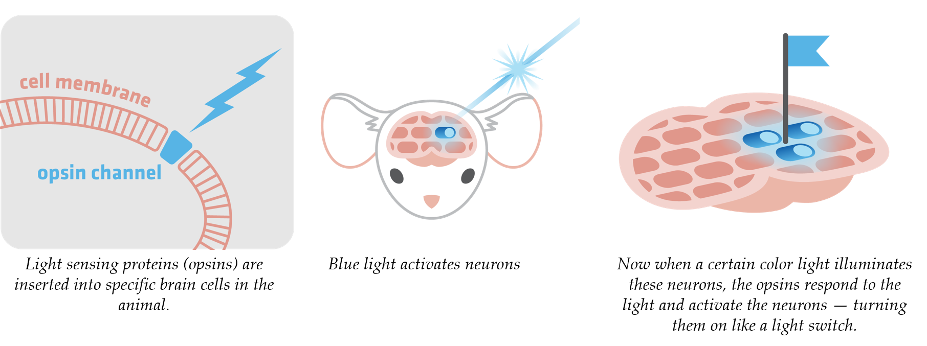 A technique neuroscientists use to view neurons in the brain and to turn them on and off with light, called optogenetics, is a promising strategy that could eventually treat a wide range of disorders, from chronic pain to conditions such as epilepsy and Parkinson’s disease.