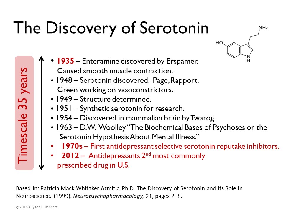 Of many examples, we might take the fact that the timeline between the discovery of neurotransmission and brain chemicals in the 1920s-50s was the foundation for the development of drug therapies to treat schizophrenia, depression, and other mental health disorders. The discoveries depended upon use of a range of nonhuman animals—frogs, rabbits, clams, cows, monkeys, and others. Yet those early studies of yet-unknown substances in blood were not aimed at developing a drug for schizophrenia. Nor would it be possible to identify the widespread contributions and benefits of the research for many decades.
