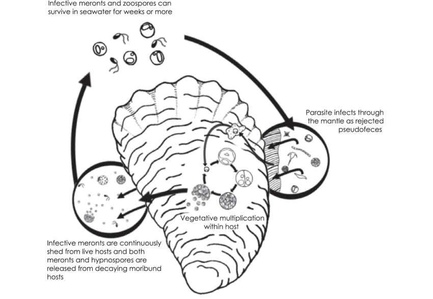 Ben-Horin, Tal & Bidegain, Gorka & Huey, Lauren & Narvaez, Diego & Bushek, David. (2015). Parasite transmission through suspension feeding. Journal of invertebrate pathology. 131. 10.1016/j.jip.2015.07.006.