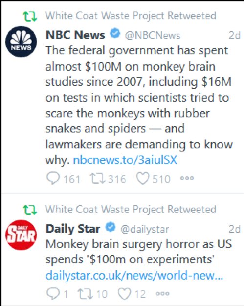 The NBC video clips were edited and put together by a known anti-animal research advocacy group, The White Coat Waste Project (WCW).This is not the first time WCW has circulated misleading videos to discredit research with substantial importance for science and medicine (see prior posts: Is Animal Research Worth the Expense?). Yet again, the WCW exploits openness/transparency mechanisms inherent to the legislative/regulatory system in the US to obtain research video from the NIH labs and uses them to mislead the public and legislators.
