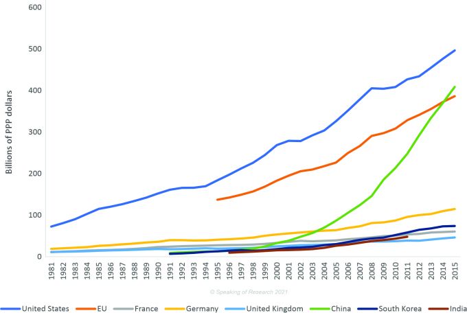 The US also needs to match R&D investment pace if it aims to be a global leader in science. For example, China has recognized the need for fundamental research (basic research) and is increasing its investment by 10% in this area. Basic/Fundamental research is the reason we had a leg-up on the COVID-19 virus—over a decade of research into similar coronaviruses which includes Severe Acute Respiratory Syndrome (SARS), Middle East Respiratory Syndrome (MERS) and many decades of research into immune system regulation and the like.