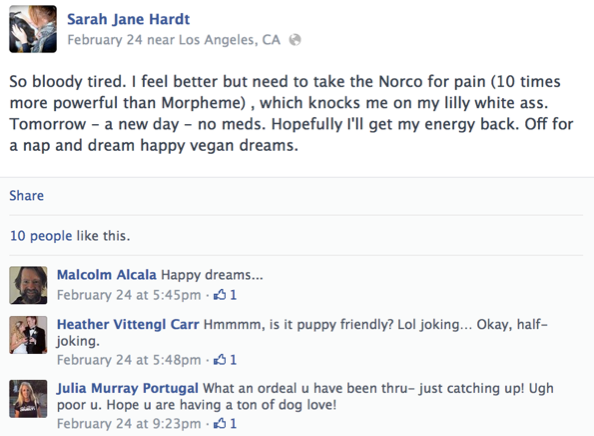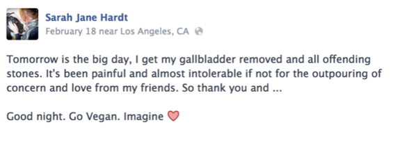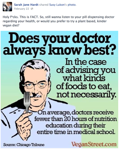 Additional insight into Sarah Jane Hardt’s beliefs are revealed in a view of medical profession that she posted a few days after her surgery regarding the ability of physicians to provide advise on nutrition and diet:
