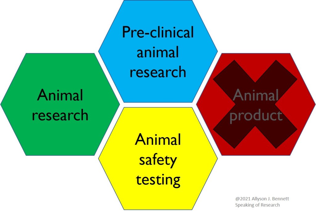 We propose here a new labeling system, one that accurately and transparently answers consumer questions. Unlike the NHS FAQ, which focused solely on whether animal products are present in a vaccine (see images above), we encourage transparency and openness that includes the many different points in the pipeline that lead to the production of new treatments. The advantage of our label is that it allows consumers to see where animals are used in the process of development of new knowledge, treatments, drugs, vaccines, and medical devices. As we and others have written many times, animal studies play many different roles in medical and scientific advances.