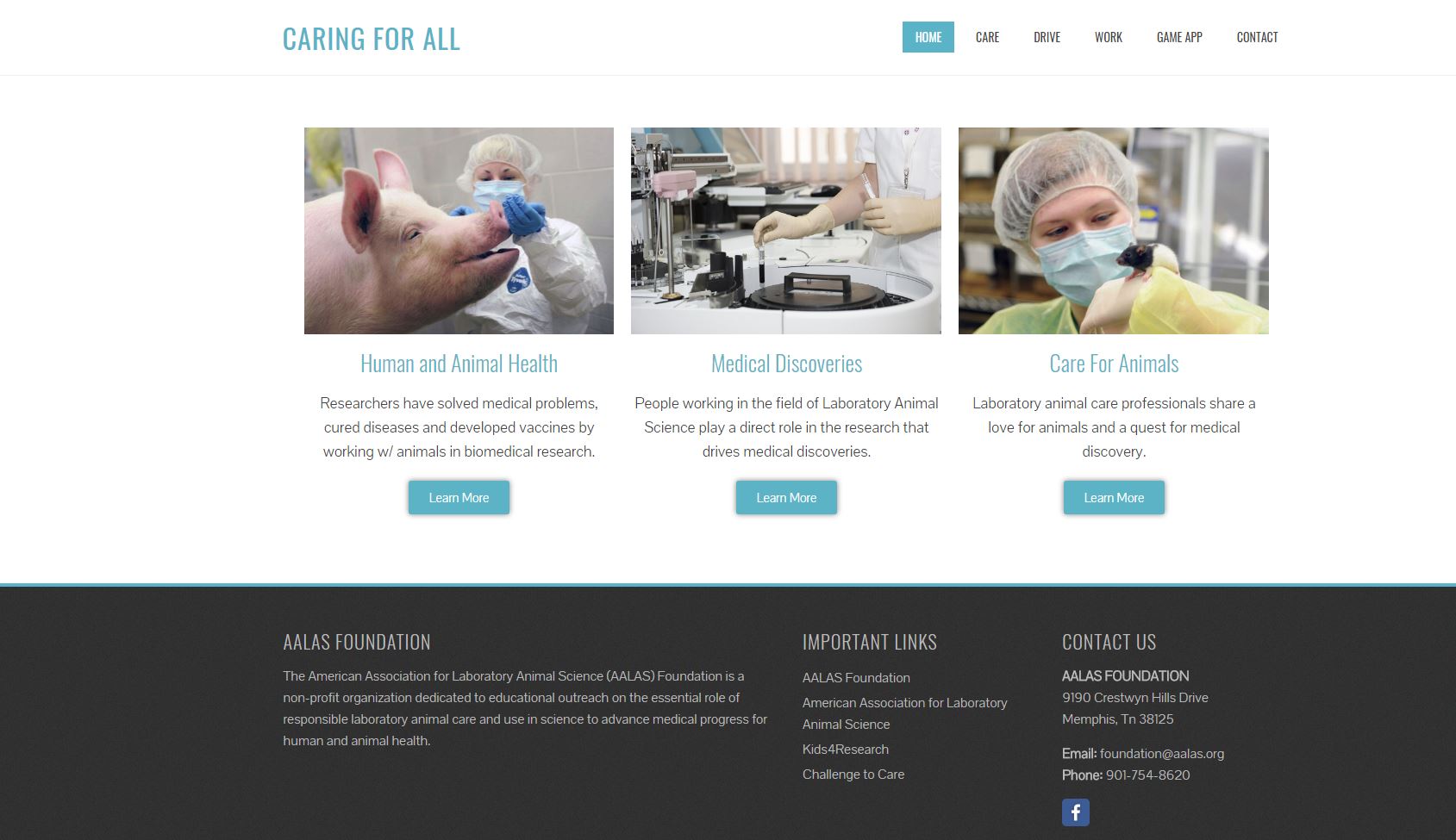 The AALAS Foundation is the public outreach arm of the AALAS organization, seeking to inform the public about the important role of animals in research via its various public outreach programs, free resource materials, and its two public awareness websites the www.Kids4Research.org and www.care.aalas.org.