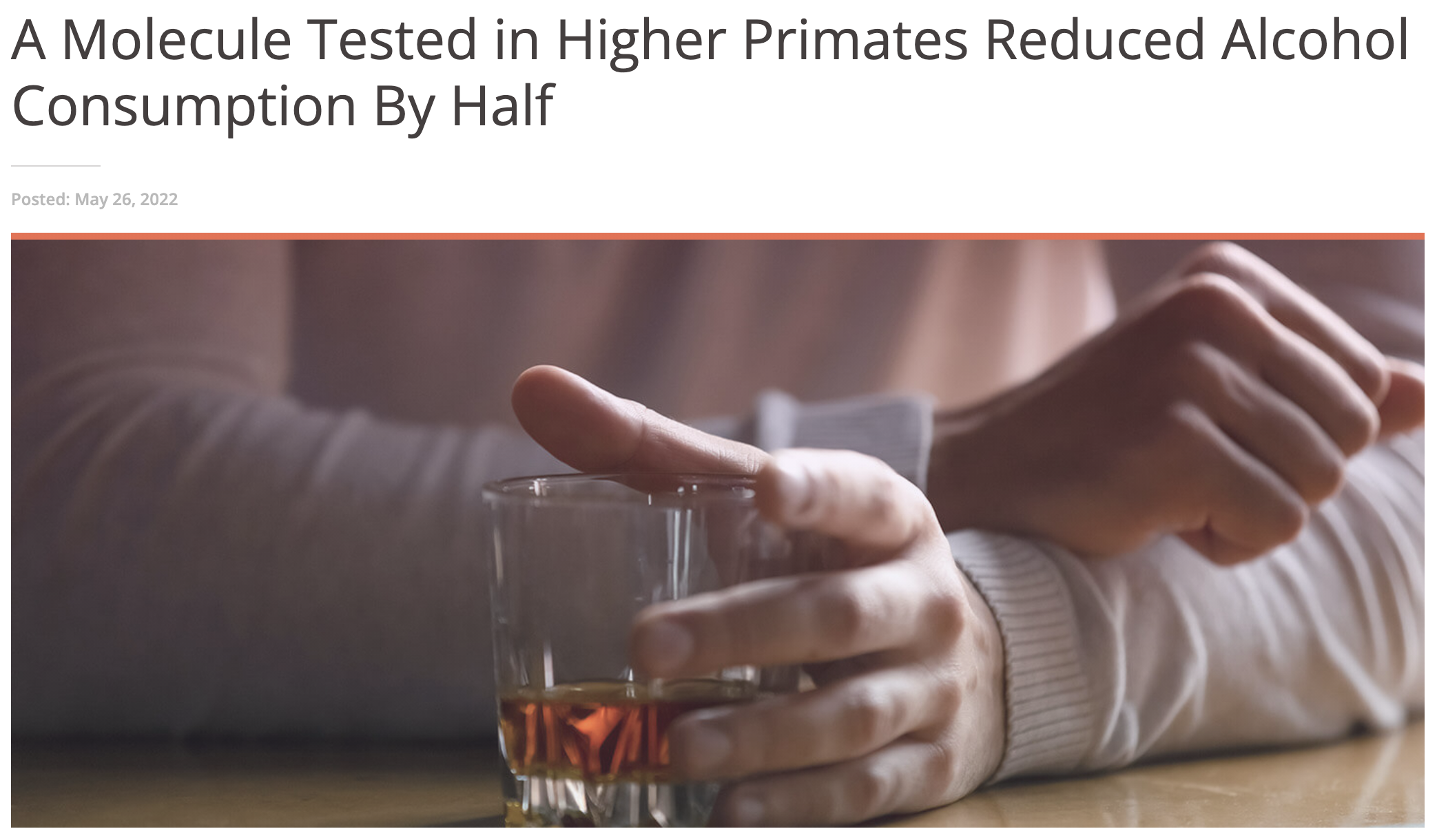 The article describes how lead researcher Kyle H. Flippo, PhD, at the University of Iowa, and his colleagues across the globe tested a molecule called FGF21 in vervet monkeys to see if it reduced alcohol intake in a free-choice drinking paradigm. This research followed prior work in rodent models, and was found to reduce alcohol consumption by half. The scientists show in their research that FGF21, as well as a synthetic analog they tested, specifically targeted a liver-to-brain regulatory circuit to reduce alcohol consumption in higher-order primates, thus underscoring its potential as a future treatment option for alcohol use disorder (AUD) in humans. The drug could also be used to treat diseases like cirrhosis, though the researchers noted that for both applications future research is needed.
