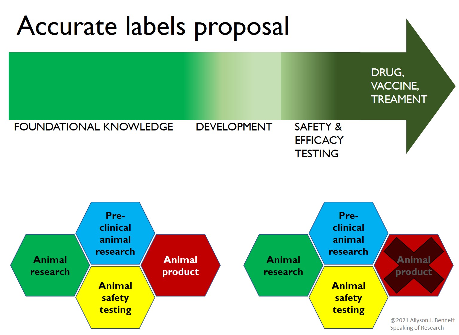Labeling drugs, vaccines, and medical devices with accurate information about the role nonhuman animal studies and testing played in the beneficial medicine or vaccine would allow people to choose to live their beliefs, or, perhaps, identify when their choices are hypocritical.