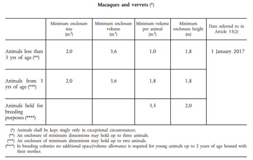 “The accommodation and care of animals should be based on the specific needs and characteristics of each species.”